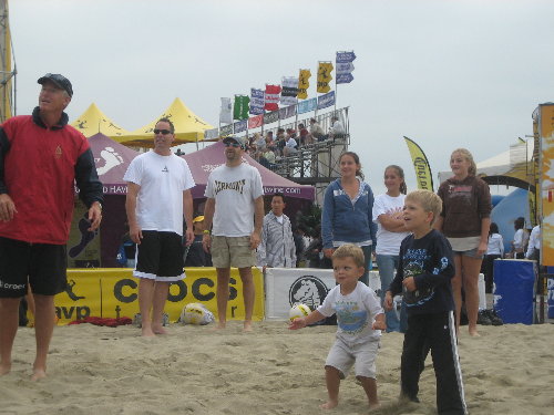 What happened was, I didn’t want to hurt anyone. I swear. You see, my sons and I were just playing around at an impromptu “volleyball clinic” hosted by retired pro-beach stud-machine Sinjin Smith. It was during an intermission of the AVP’s pro-beach tournament in San Francisco. Spectators were simply playing “king of the court” in which everyone gets a chance to knock the other team off the court with one play. Sinjin was simply there to shake hands, pose for photos and offer basic coaching tips. But when Jack (6), Dylan (3) and Daddy (40) stepped onto the sand, Sinjin could see we’d need help.