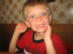 His friends love it. His mother can barely look at it. His desk neighbor in first-grade squealed in shock, then announced that his mouth looks like it belongs to a jackolantern (perfect analogy!). He’s having quite a lot of fun with it and makes a variety of truly funny faces, including a goofy Mona Lisa smile in which the loose tooth is the only one you see.